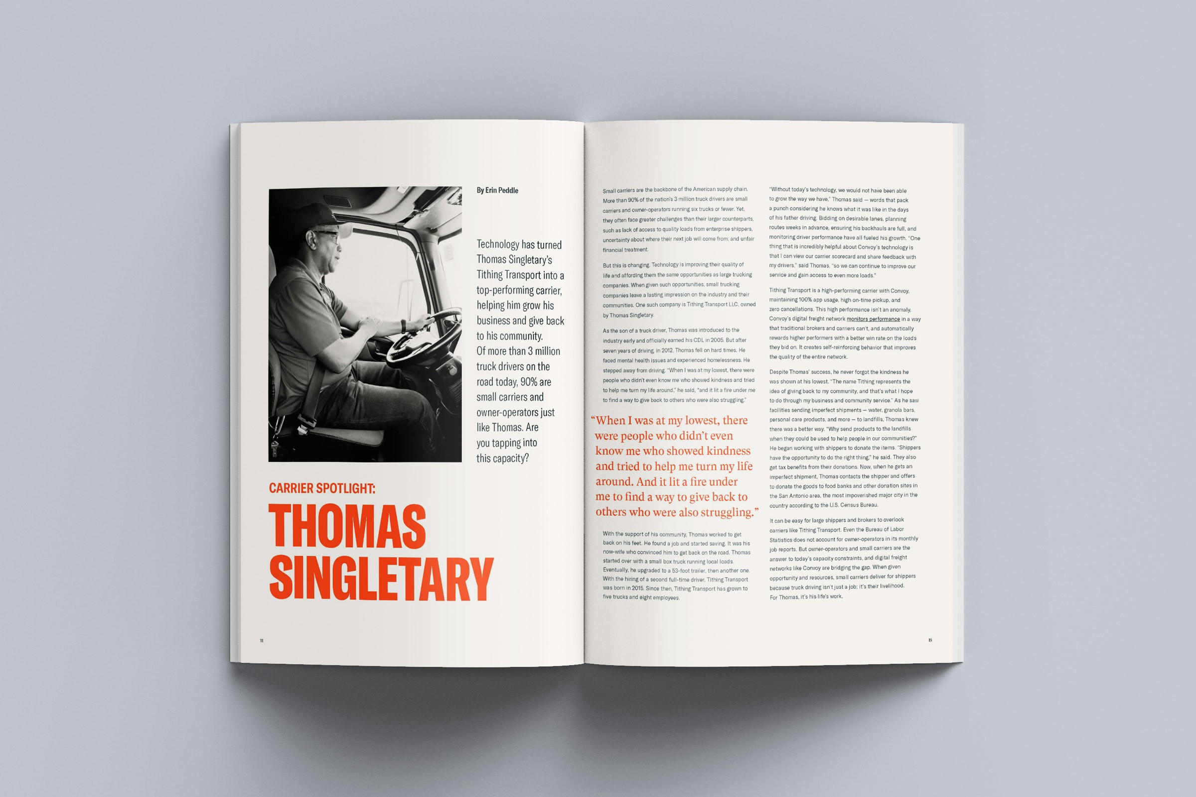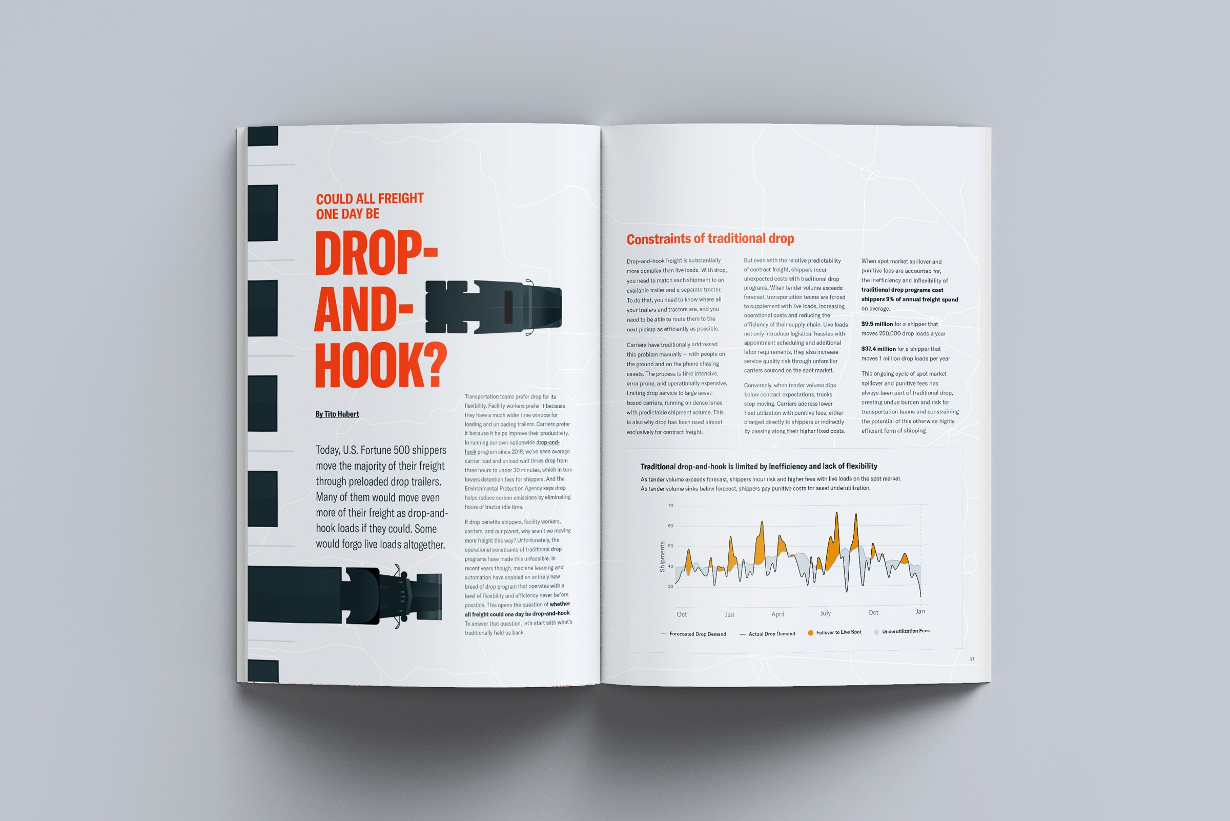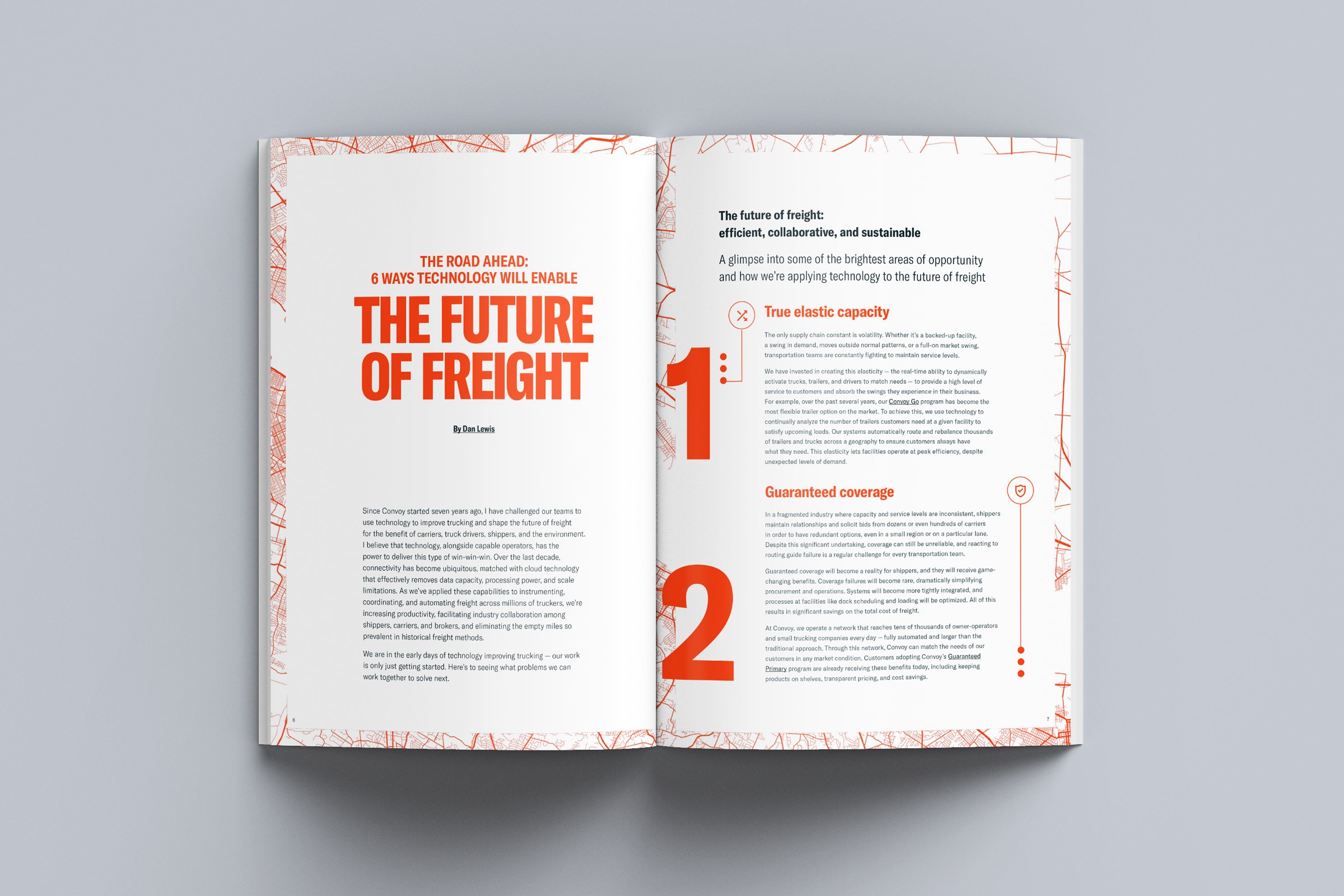 One of Convoy's biggest marketing challenges was breaking through the noise to make its own differentiation clear and compelling. So I pitched the idea to test print. Print can’t get lost in email inboxes or scrolled past on digital feeds. We used a large format and quality paper that someone would rather share or display on a coffee table than throw away.